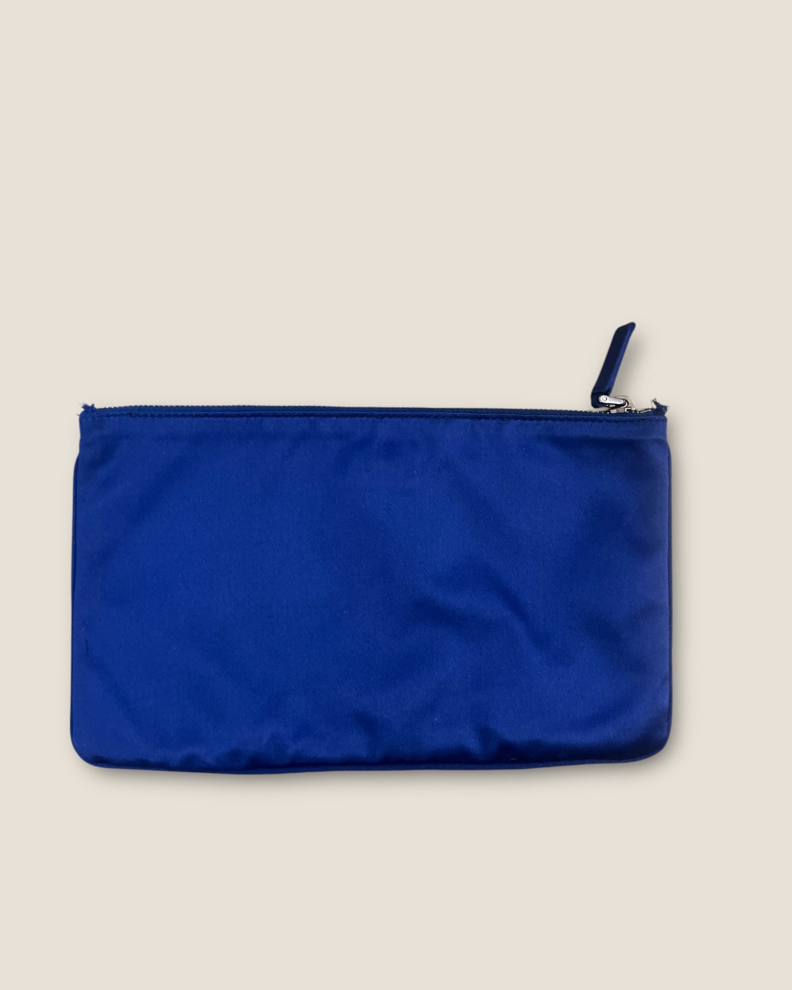Organize your handbag effortlessly with the Prada Satin Blue Pouch. Made of high-quality satin, this versatile pouch can be used alone or added to your handbag organization. Keep your essentials within reach and in style with this must-have accessory.