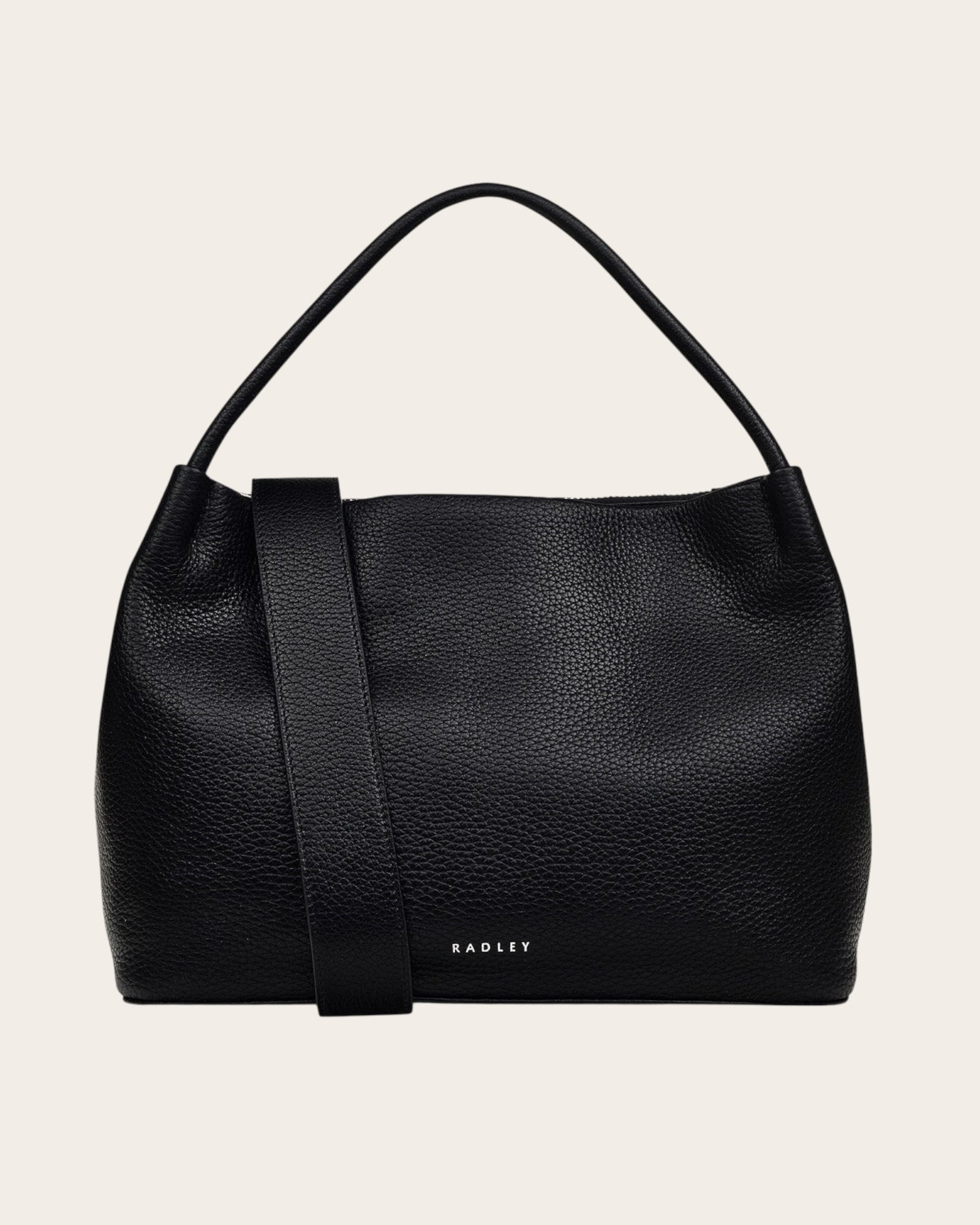 Radley's classic black grained leather tote strikes the perfect balance between style and practicality. Spacious enough to carry your essentials without weighing you down, this structured bag transitions seamlessly from office to weekend plans. The timeless black leather develops character with age, making it a reliable companion for life's constant hustle. Compact yet capable—exactly what a busy schedule demands.