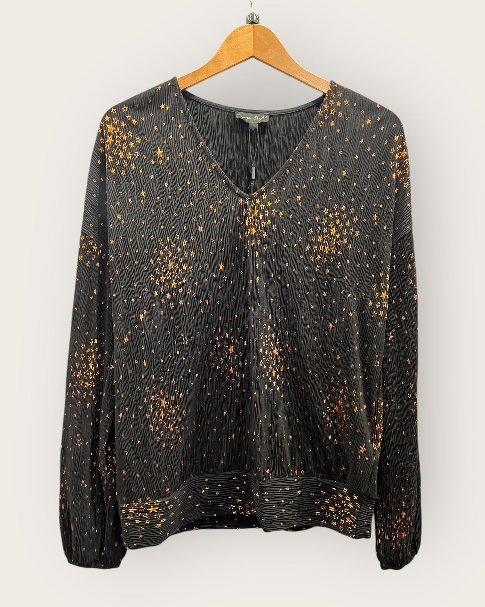 This preloved black and rust star top from Phase Eight is perfect for adding a touch of personality to any outfit. With tags still attached, it's like getting a brand new top at a discounted price. Size 10.