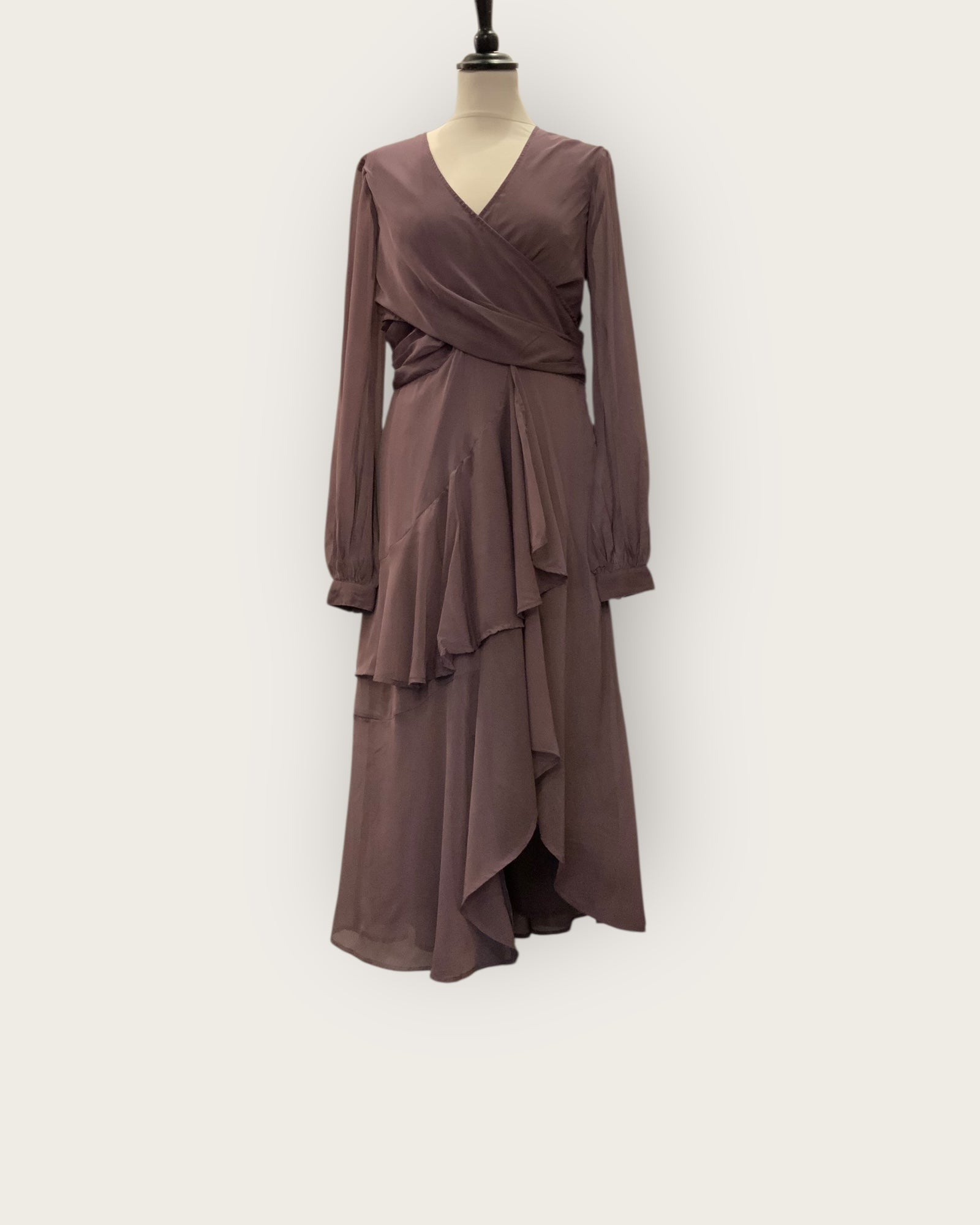 The ASOS damson chiffon dress in size 10 is perfect for an autumnal dry day wedding. Its stunning design is sure to make you stand out on any special occasion. Made with high-quality materials, this dress exudes elegance and sophistication. Get ready to turn heads with this stylish and chic piece.