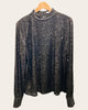 Elevate your wardrobe with this sophisticated Zara black diamanté shirt, expertly tailored for a refined fit. The subtle sparkle of diamanté detailing adds an understated glamour to the classic black silhouette, making it perfect for both evening occasions and elevated everyday wear. True to size for a Medium, this piece combines timeless elegance with contemporary style—a versatile essential that transitions seamlessly from day to night.