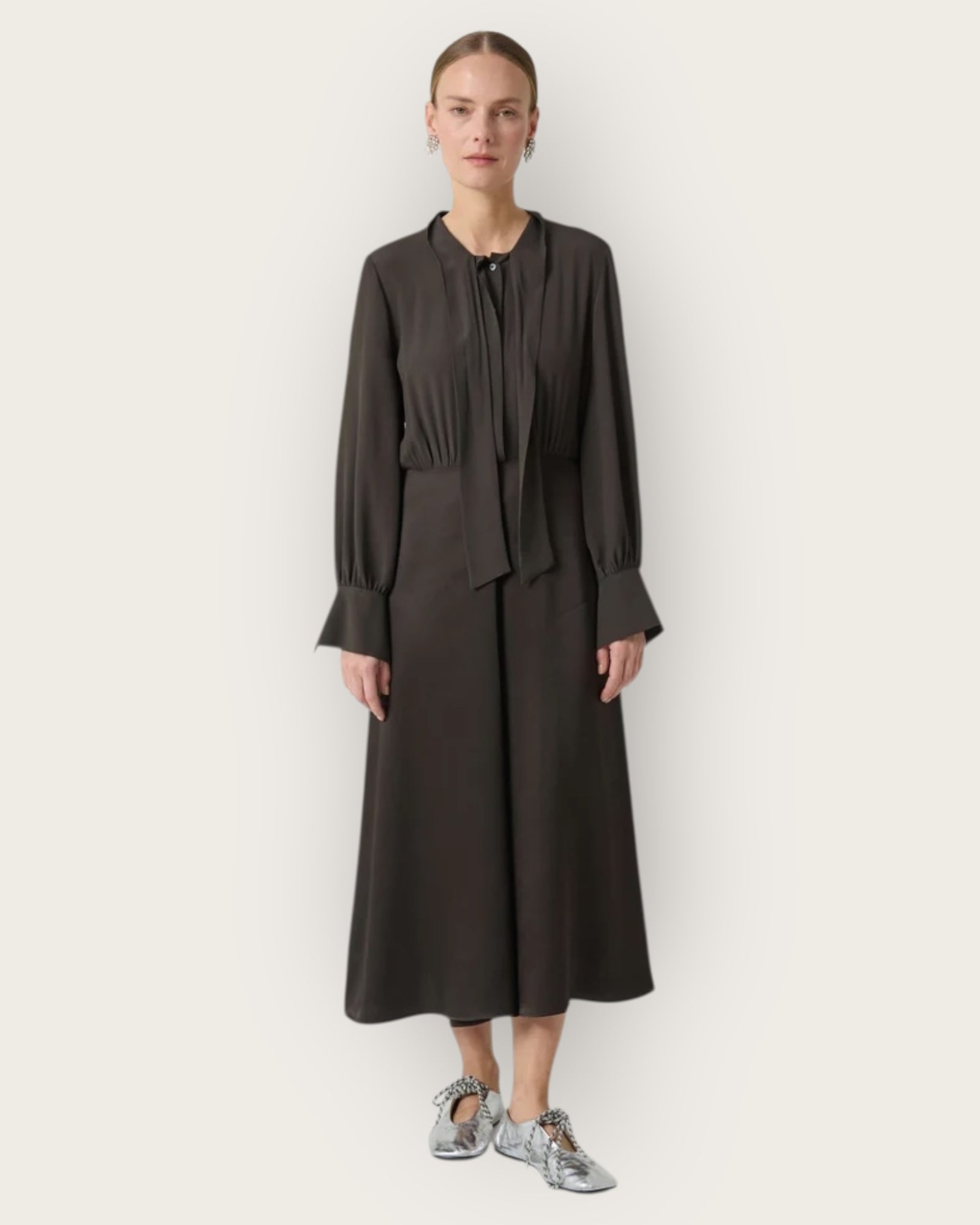 Elevate your wardrobe with this exquisite Beatrice Brown satin dress in size 8. Crafted from luxurious satin fabric, this piece showcases timeless elegance with a refined silhouette perfect for special occasions or sophisticated evenings out. The rich brown tone offers versatility, pairing effortlessly with statement jewellery or classic accessories. A standout addition to this season's collection, this dress embodies contemporary style with enduring appeal.