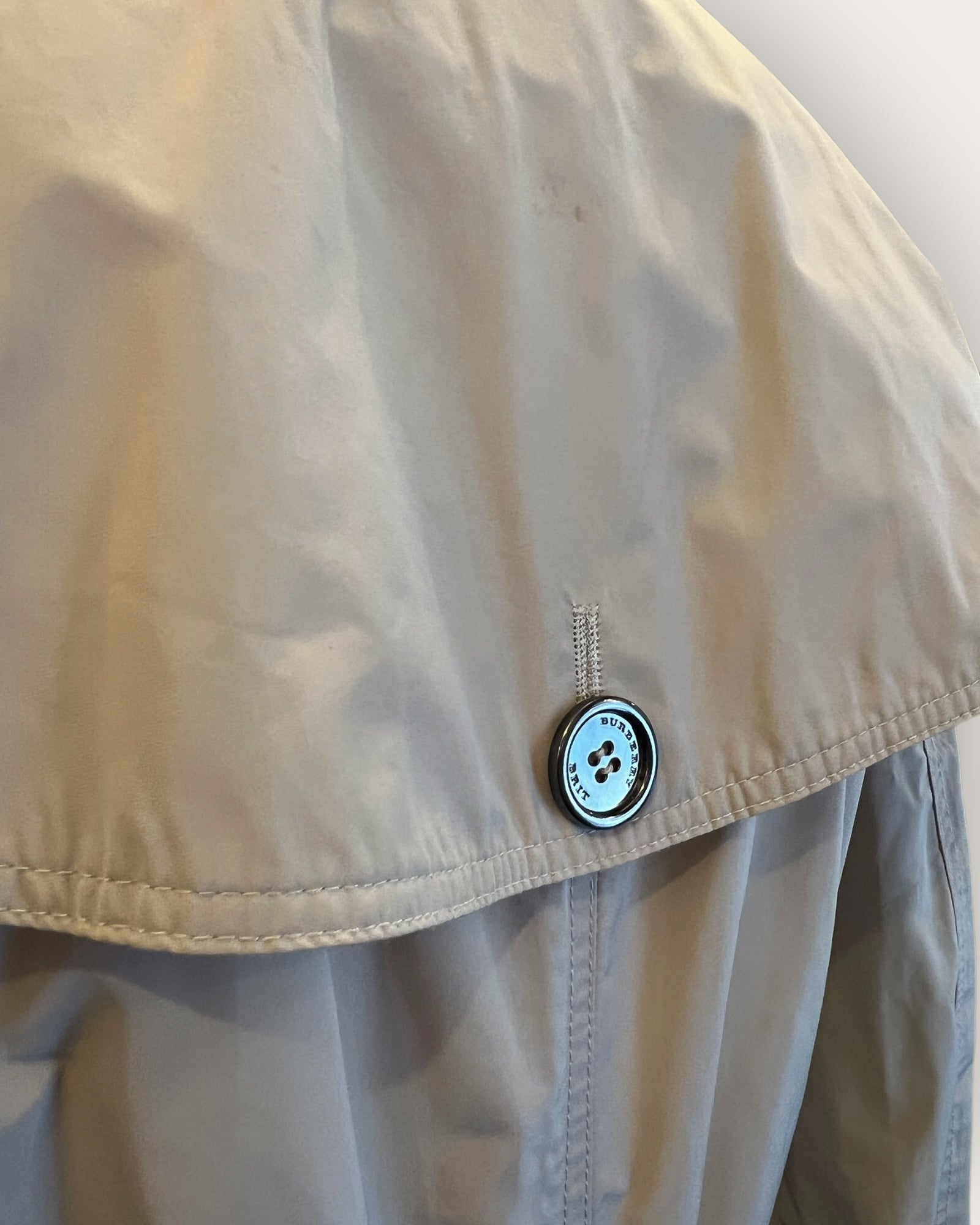 Stay stylish and dry in this Burberry Short Rain Mac in a flattering stone colour. True to size and in great preowned condition, this coat guarantees both fashion and functionality. Don't let the rain ruin your day, rely on this mac to keep you looking and feeling your best.