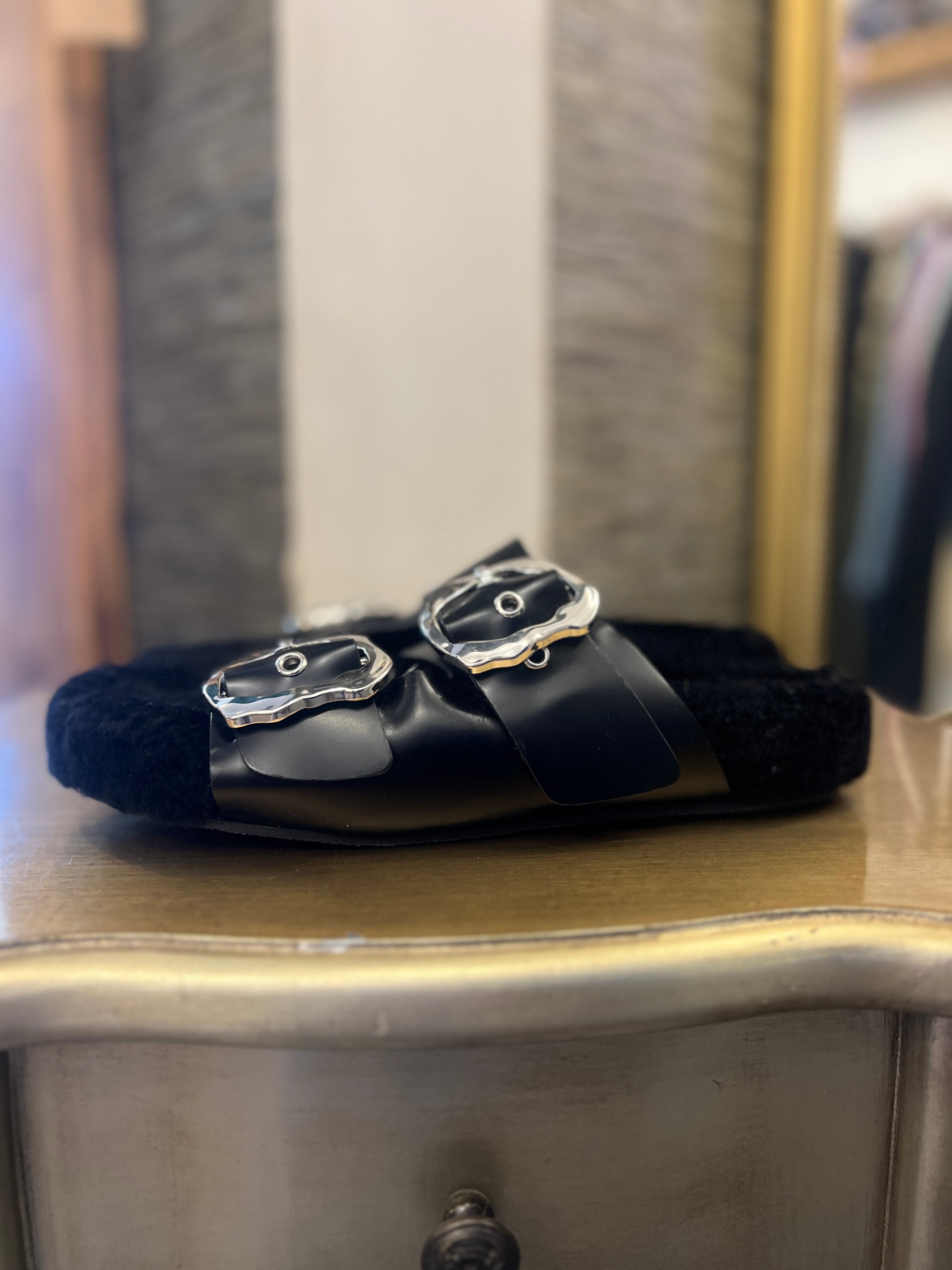 Jigsaw black shearling lined leather sandals size 40