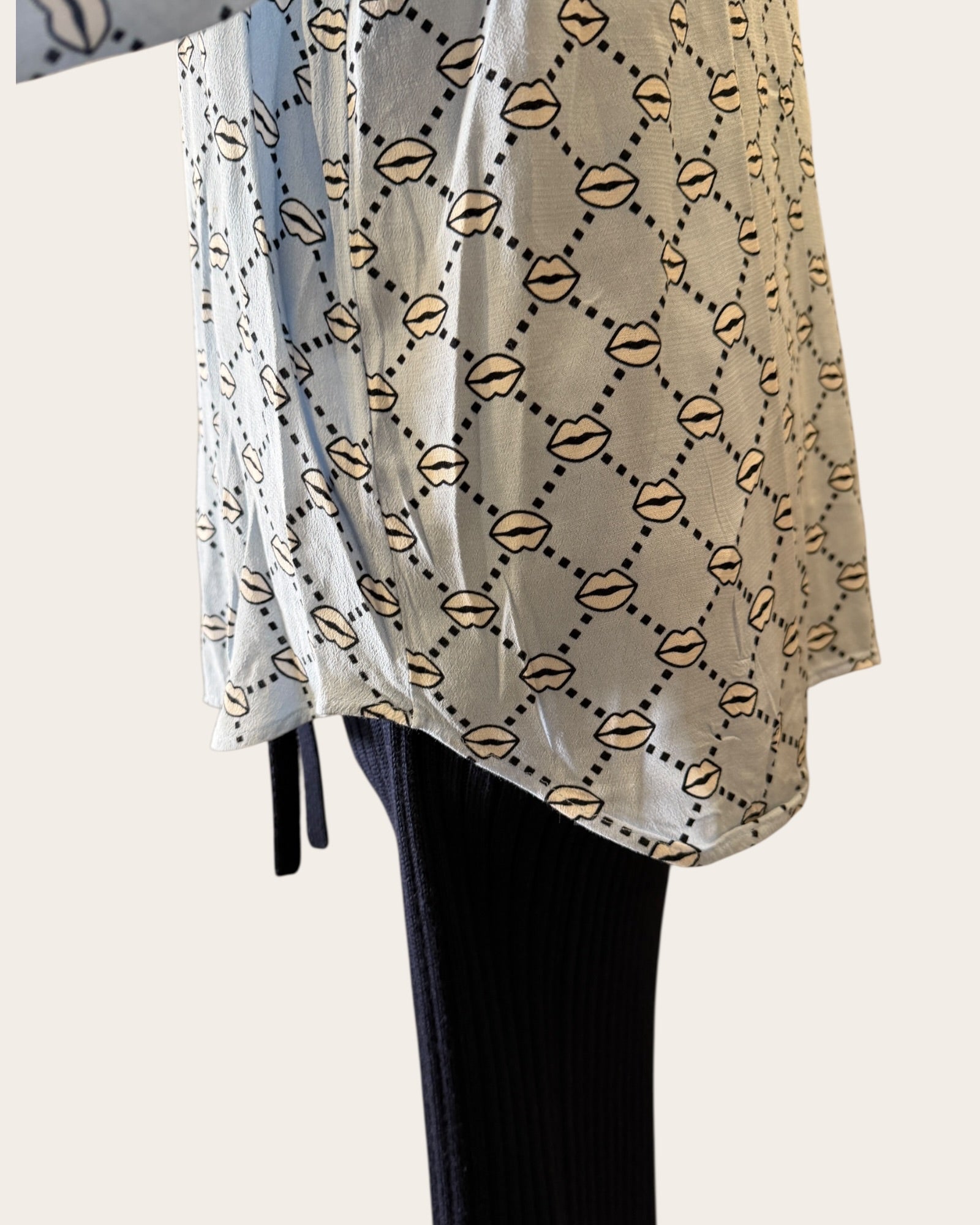Pucker up for this cheeky Markus Lupfer lips shirt—the playful piece that had Holly Willoughby turning heads. Crafted in a flattering size 8, this statement top features the designer's signature bold lip motif that's equal parts fun and fashion-forward. Perfect for adding a flirty dose of personality to your everyday wardrobe or elevating a night out. A preloved gem that proves great style never goes out of style.