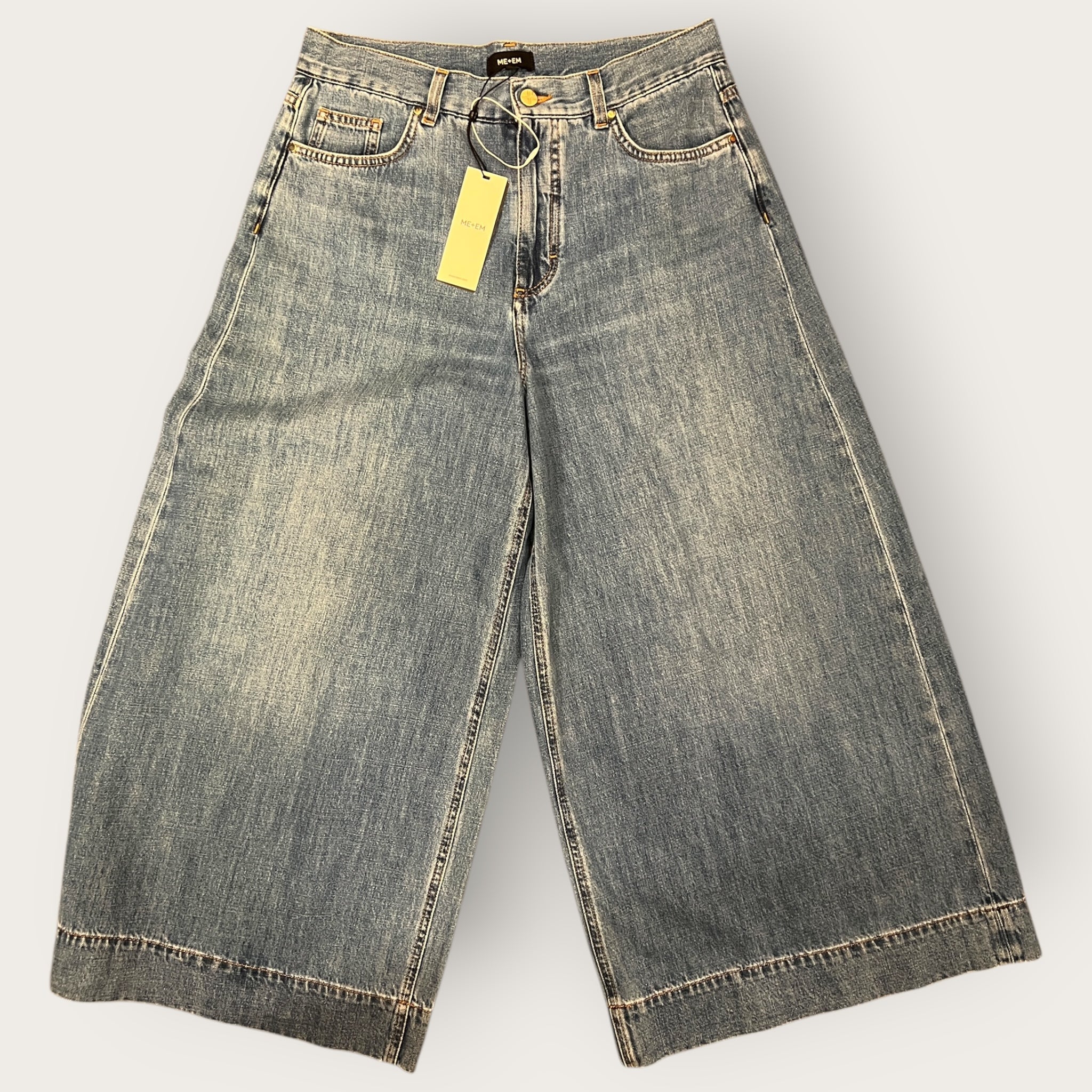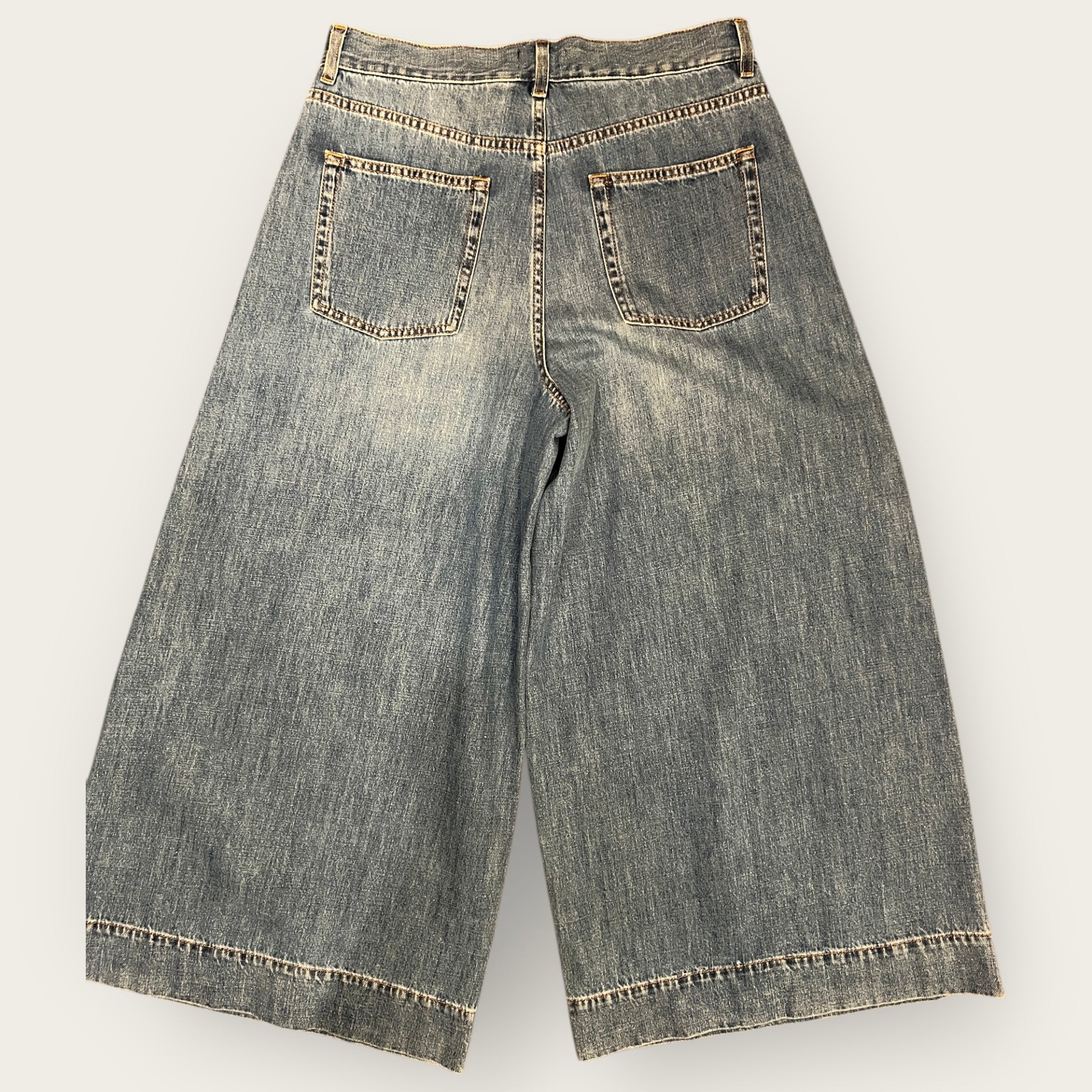 ME+EM culotte crop jeans in size 29, presented in preowned condition with original tags still attached. These designer denim pieces offer that coveted relaxed silhouette with cropped proportions, perfect for effortless styling. The unworn state with tags ensures you're getting quality craftsmanship at a fraction of the original price. An excellent choice for those seeking authentic designer pieces with minimal wear.