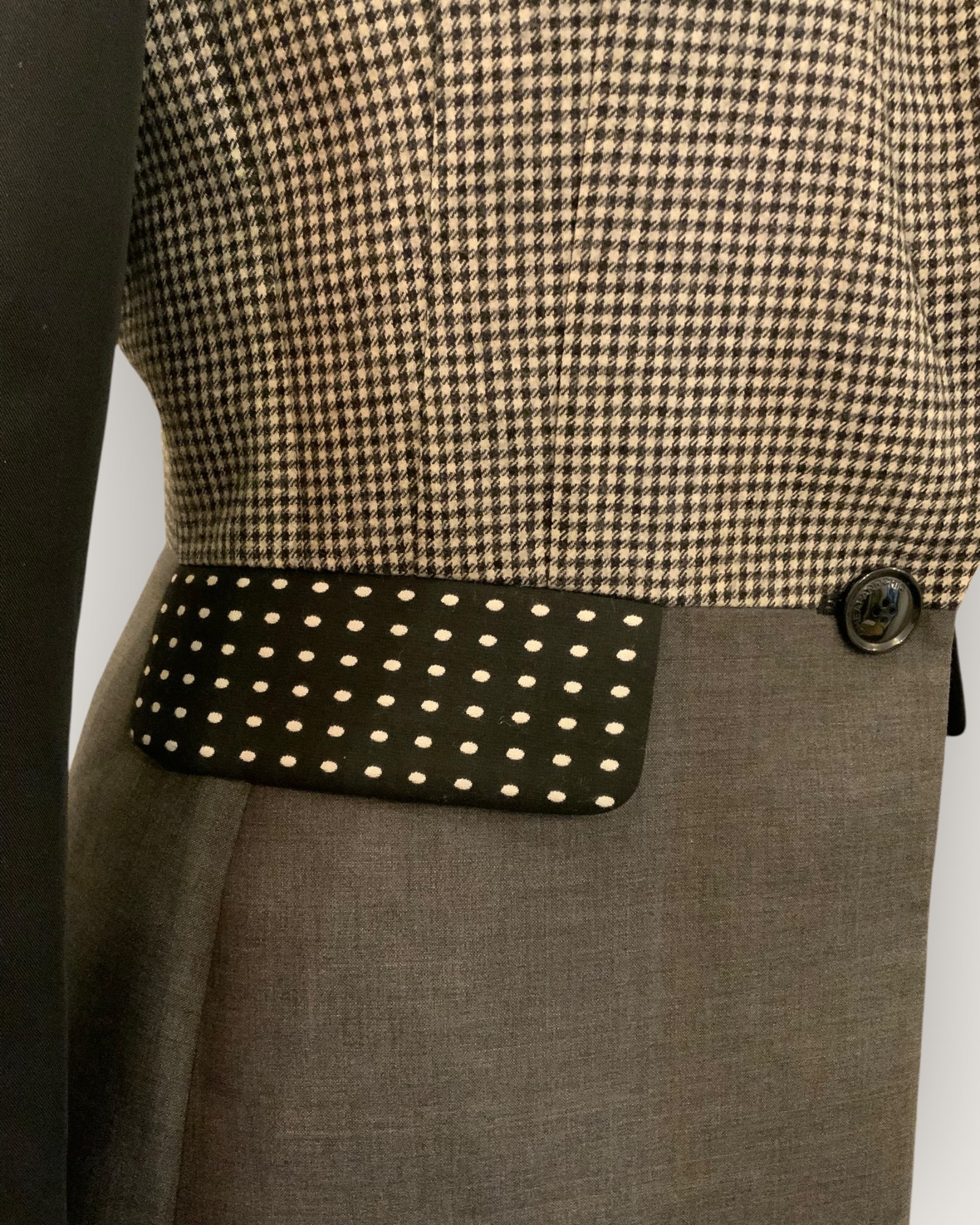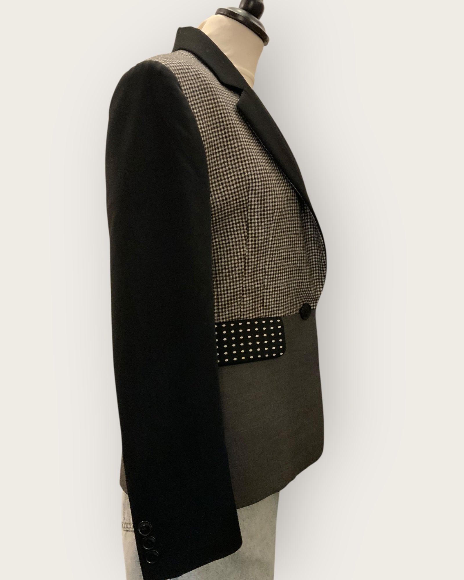 Effortlessly elevate your style with this Moschino grey/black blazer in size 10. Designed for both weekend drinks and the office, the versatile blazer can be paired with chilled jeans for a casual look or dressed up with black trousers for a sophisticated outfit. Upgrade your wardrobe with this must-have piece.