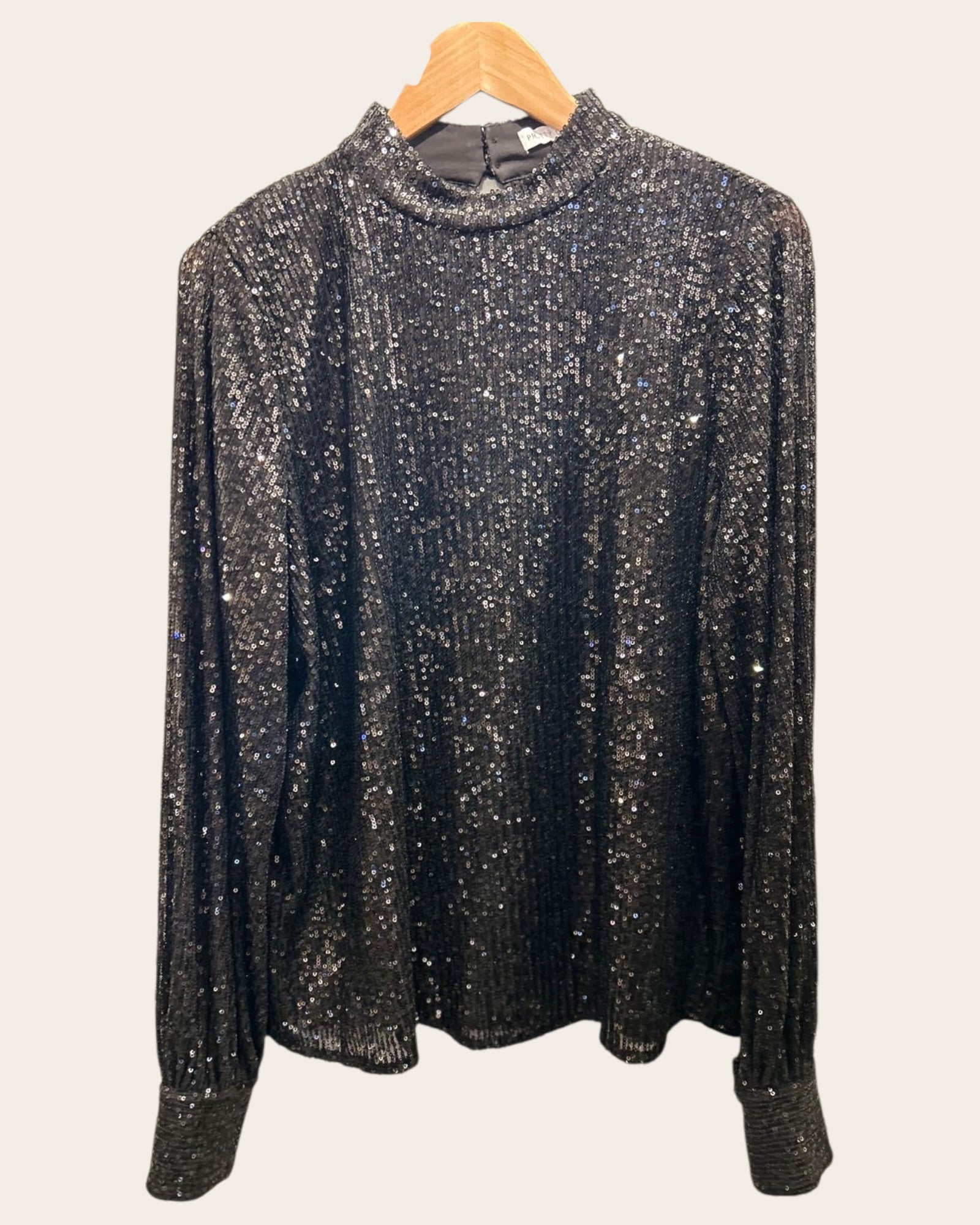Elevate your evening wardrobe with this stunning black sequin top, a piece that effortlessly transitions from sophisticated soirées to glamorous nights out. Crafted in a flattering size S/M, this lavish design features shimmering sequins that catch the light beautifully, creating an eye-catching shimmer with every movement. The refined silhouette offers a polished look that pairs seamlessly with tailored trousers or a sleek skirt. New with tags, this is an exceptional find for those seeking timeless elegance with contemporary sparkle.