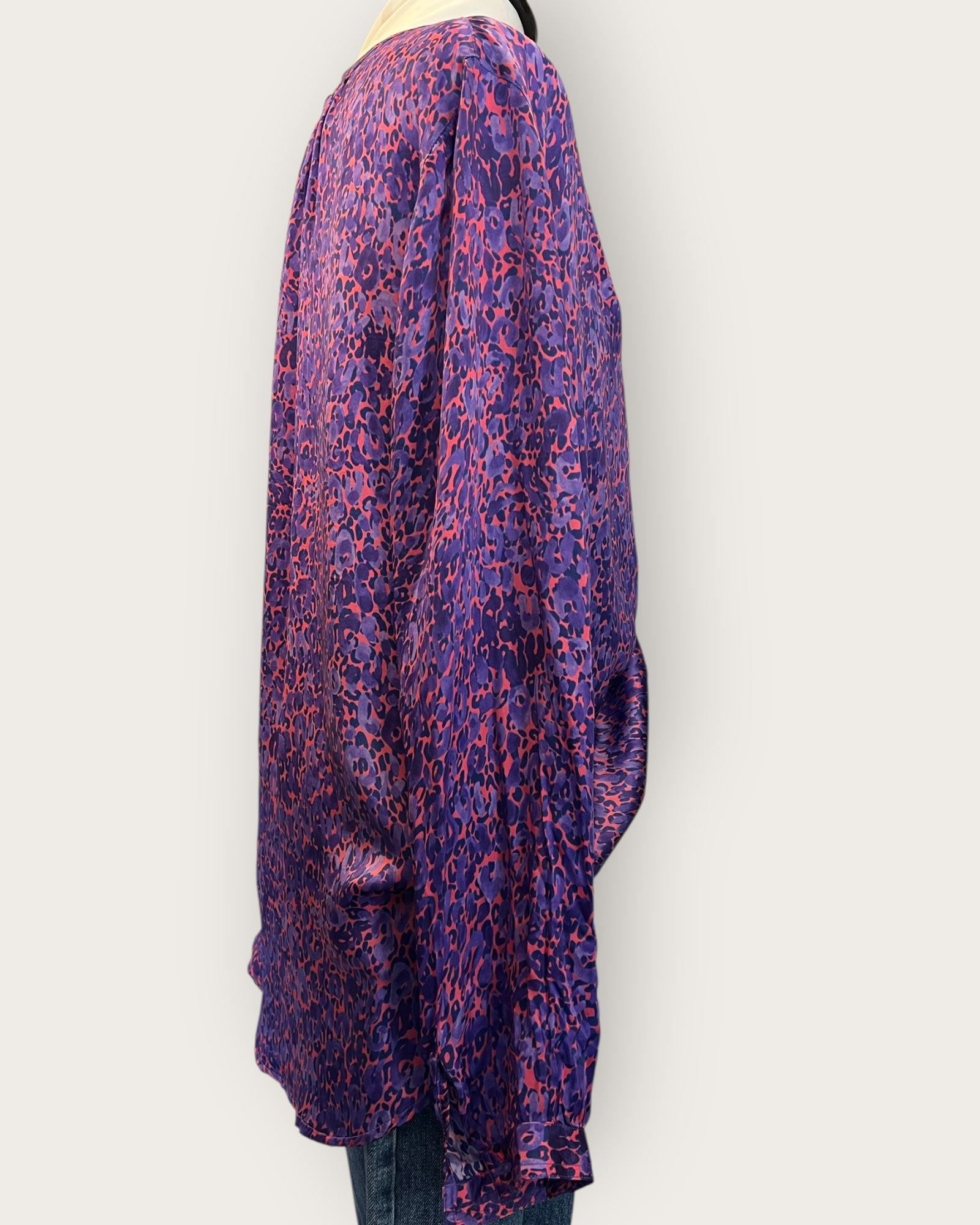 Upgrade your wardrobe with this exquisite Primrose park purple blouse in size Medium. Made with 100% viscose, it feels like luxurious silk and features a convenient pull-on style and neat button cuffs. Perfectly preowned and in lovely condition, this blouse is a must-have for any fashion-forward individual.
