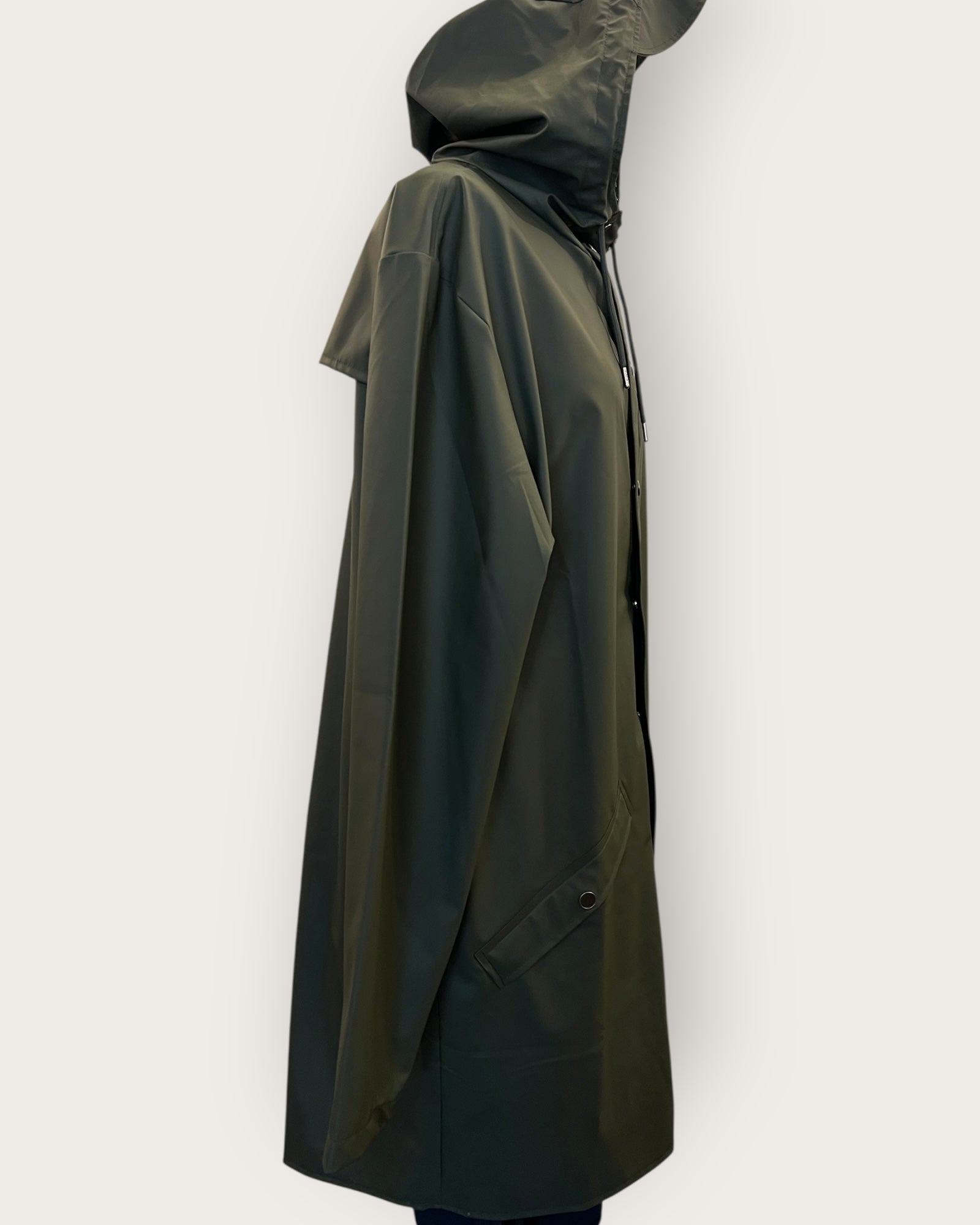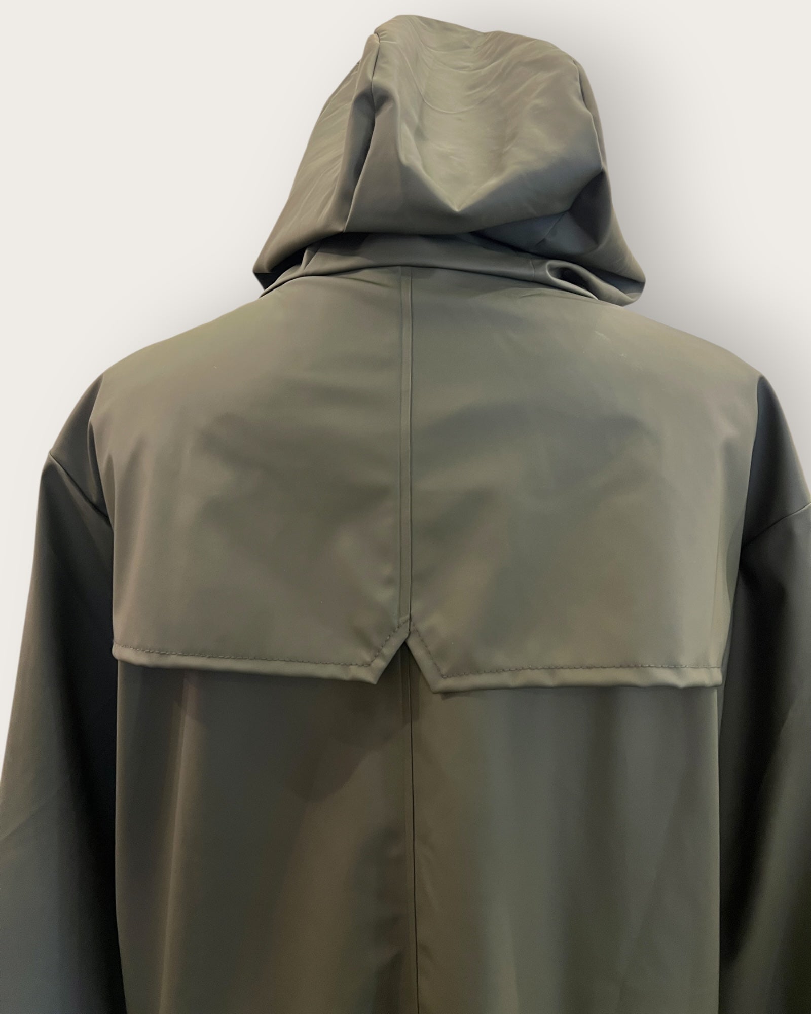 Expertly crafted from durable, water-resistant fabric, Rain's Khaki Mac in size Medium is the essential outerwear for any weather. Its knee-length design offers maximum coverage while maintaining a sleek and stylish look. Stay dry and sophisticated in this must-have mac.